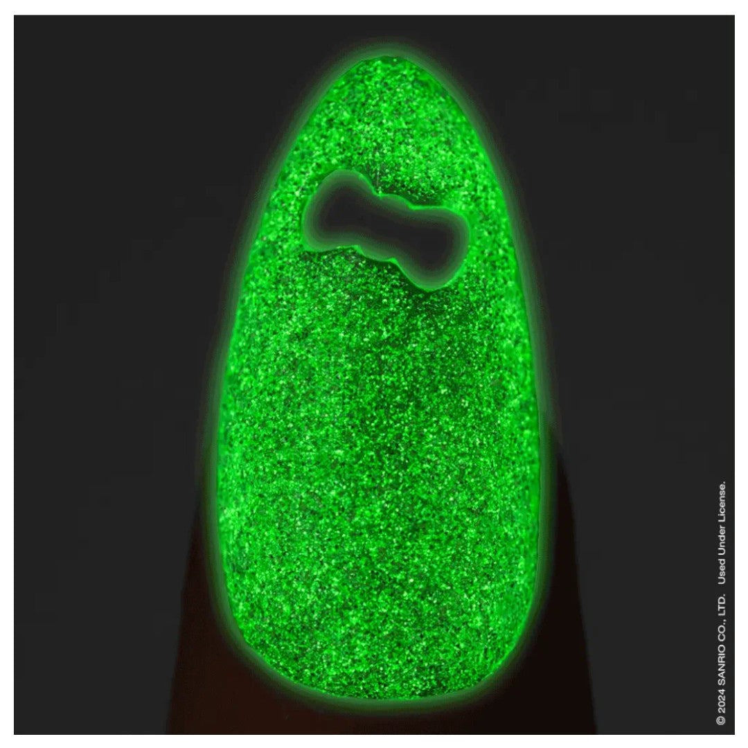 The limited edition playful glow-in-the-dark colors, Kuromi™ Flash Glitter Gel couleur will capture all the shades of troublemaking and mischievous partying with friends. The Kuromi™ Flash Glitter Gel couleur is HEMA-free, vegan and cruelty-free and safe for natural nails with a base gelcoat and great with Gel-X® Tips.