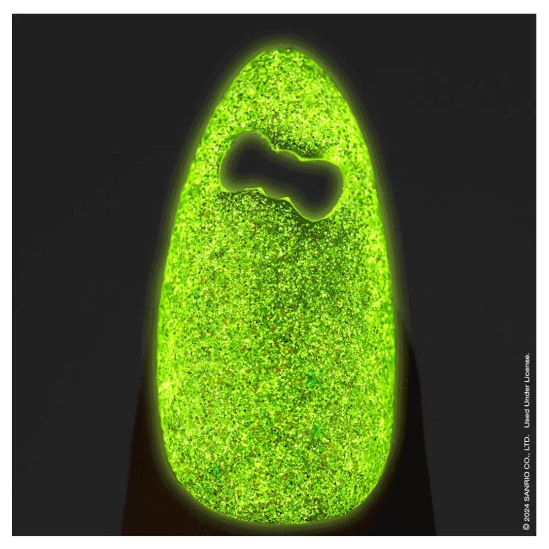 The limited edition playful glow-in-the-dark colors, Kuromi™ Flash Glitter Gel couleur will capture all the shades of troublemaking and mischievous partying with friends. The Kuromi™ Flash Glitter Gel couleur is HEMA-free, vegan and cruelty-free and safe for natural nails with a base gelcoat and great with Gel-X® Tips.