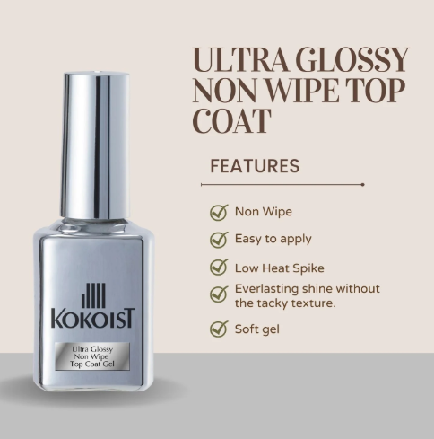 Kokoist Ultra Glossy Non-Wipe Top Coat Gel – 15ml #T2 | High-Shine, Scratch-Resistant Finish