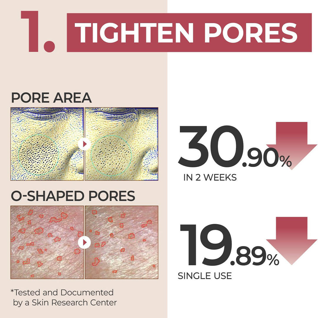 [CLINICALLY TESTED] Clinically proven to reduce pore area by 30.90% and reduce skin roughness by 11.39% in just 2 weeks. Effectiveness enhanced by 214% when used in combination with no.3 toner. Skin irritation and hypoallergenic tests completed, making it safe to use for sensitive and acne-prone skin types.
